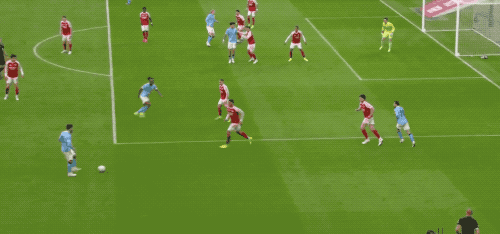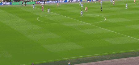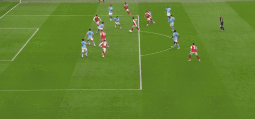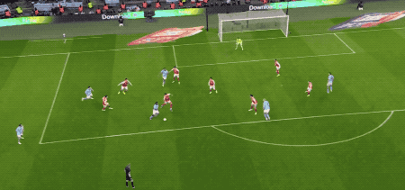 第7分鐘,蘇維門迪送出妙傳,面對哈弗茨的順勢射門,以及薩卡的兩腳補射,特拉福德上演三連撲。