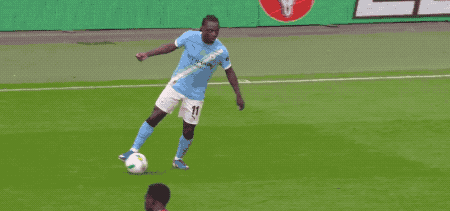 第44分鐘,塞梅尼奧面對3人防守,強行突破下底傳中,哈蘭德的頭球沒能頂正部位。
